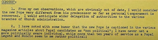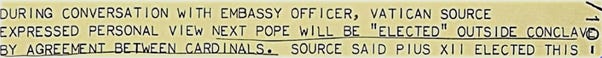 Note additionally this gem: Cardinal Siri (or other traditionalists), if elected, would be a “misfortune for Church”.