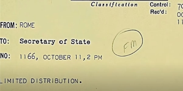 They’re two (now declassified) documents (memoranda) sent from the American Ambassador Zellerbach (a Jewish man) in Italy, to the ex CIA chief John Foster Dulles (yes, those infamous Dulles brothers), the then Secretary of State under Eisenhour.