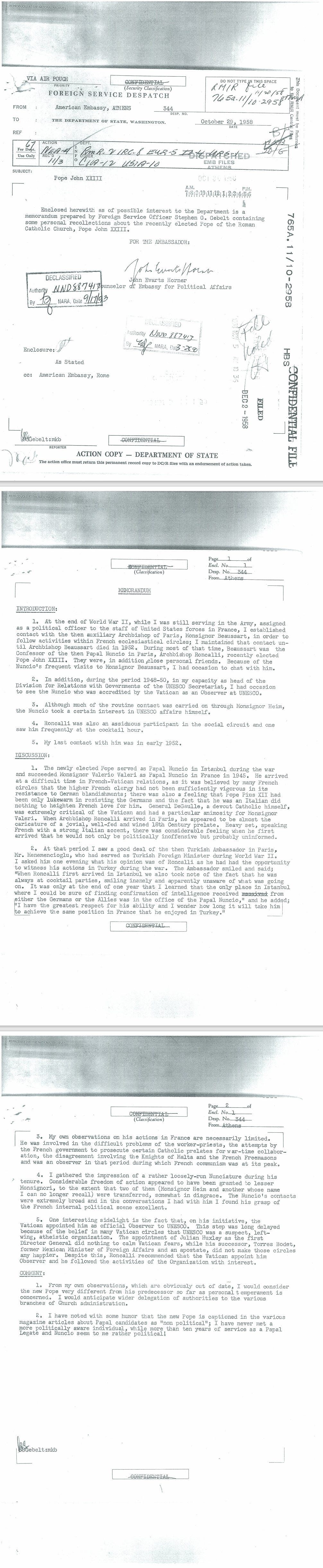 Now look at this second declassified document, which was produced _after_ the election of the freemason and again it seems to be an exchange between Zellerbach and Dulles, look at the how he describes Roncalli in the second paragraph: